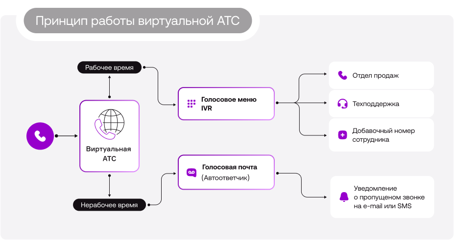 Подробнее о том как работает Виртуальная АТС рассказываем в это статье.