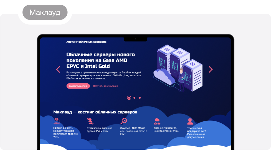 Маклауд — относительно новый хостинг-провайдер, на рынке присутствует с 2021 года. Местонахождение дата-центров: Россия (Москва).